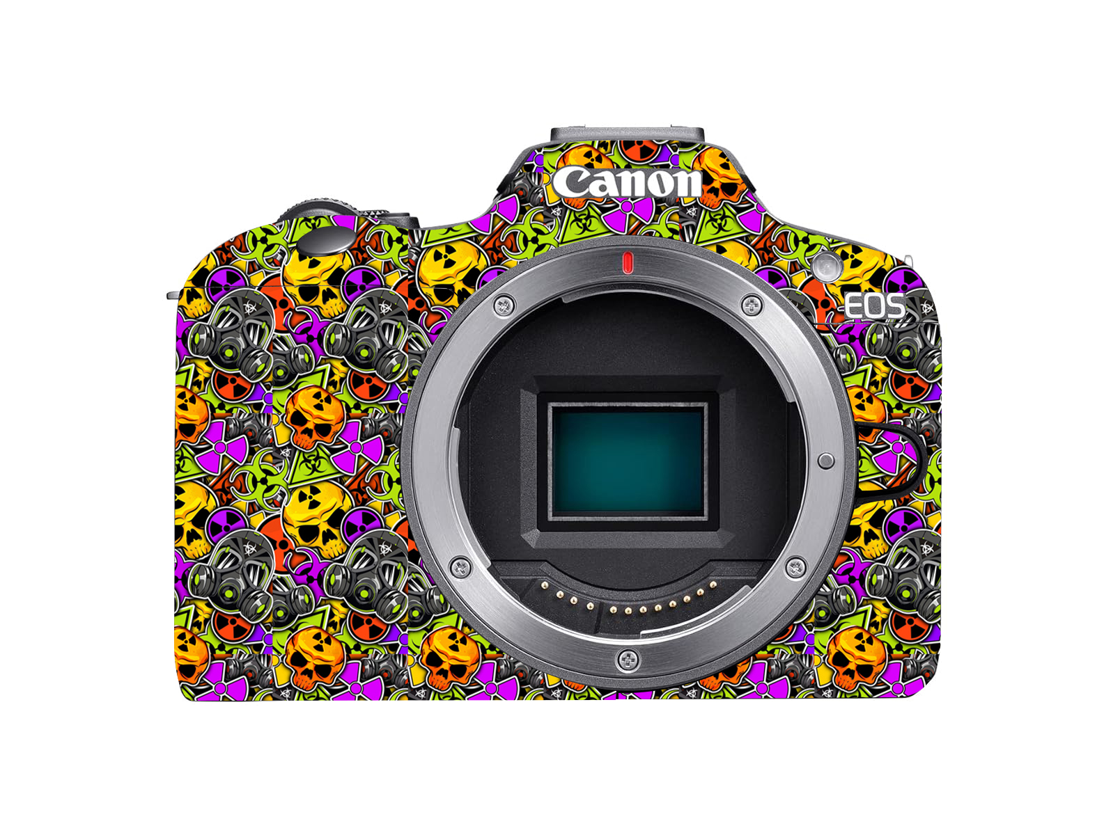 Make your camera stand out with the Toxic Skull Graffiti 3D Texture Camera Skin, a daring design inspired by urban street art and hazard-style graphics. Featuring colorful skulls, gas masks, and biohazard symbols, this skin gives your camera a powerful and rebellious aesthetic that instantly grabs attention.